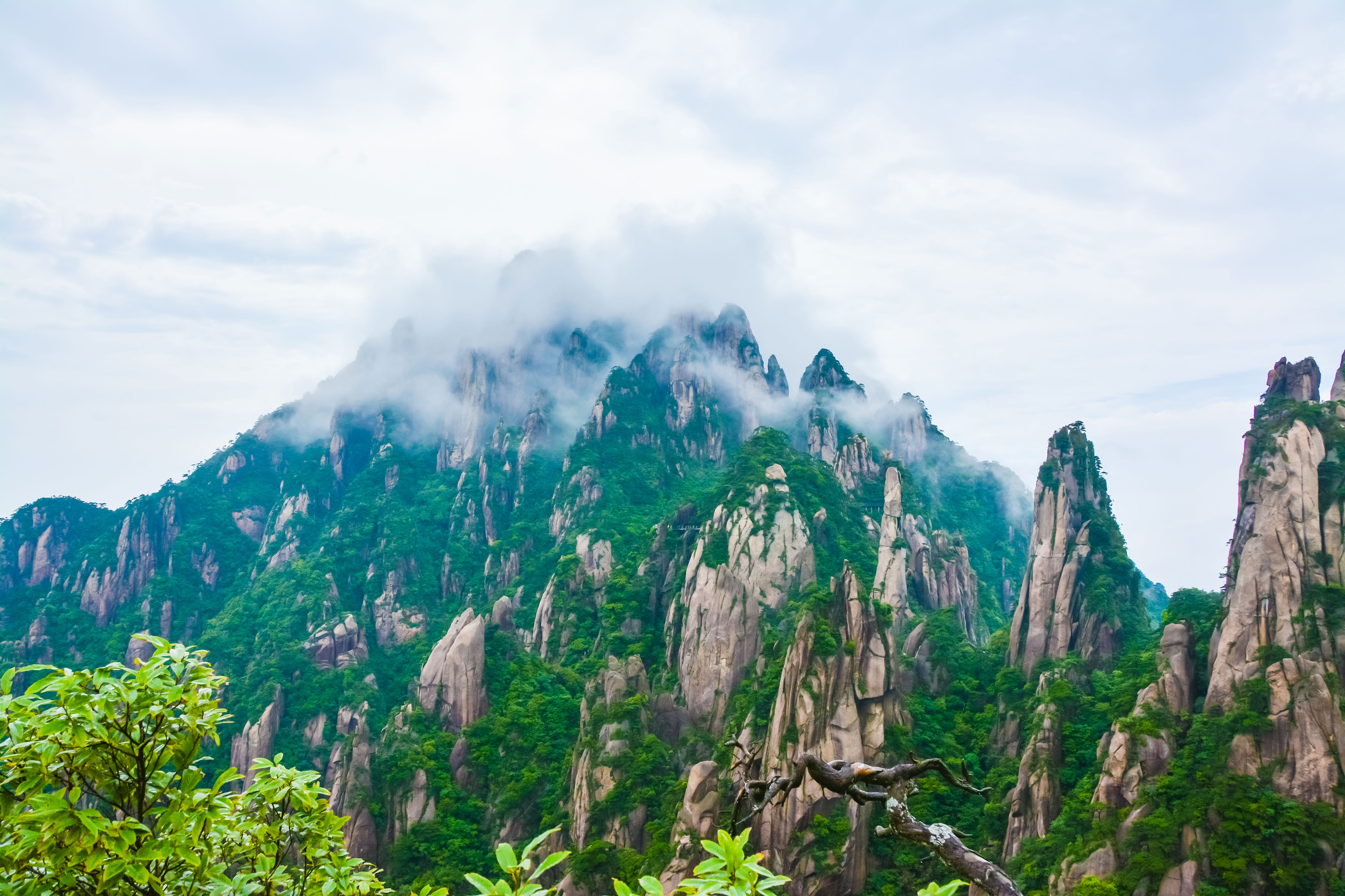 揽胜遍五岳,绝景在三清。三清山,是中国的道教名山,以奇特的花岗岩峰林地貌闻名于世,被誉为“太平洋西岸最美的花岗岩”。云海绝景下雄险奇峻的山峰,自带仙风道骨之感,山间惟妙惟肖的奇石,在云雾缭绕间,宛如一幅绝美的水墨画,雄奇秀美,清朗俊逸,不愧是天下第一仙山!